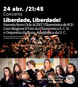 A Câmara Municipal de Tondela, em parceria com a ACERT, realiza no domingo, pelas 21:45, um concerto solidário em homenagem ao povo ucraniano, intitulado “Liberdade, Liberdade!”.